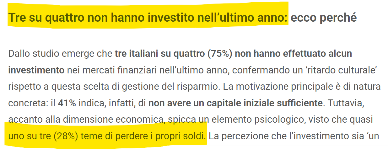 Se la maggioranza delle persone non investe per paura di perdere, significa che sta scegliendo un’altra cosa: accetta di non far crescere il proprio capitale.