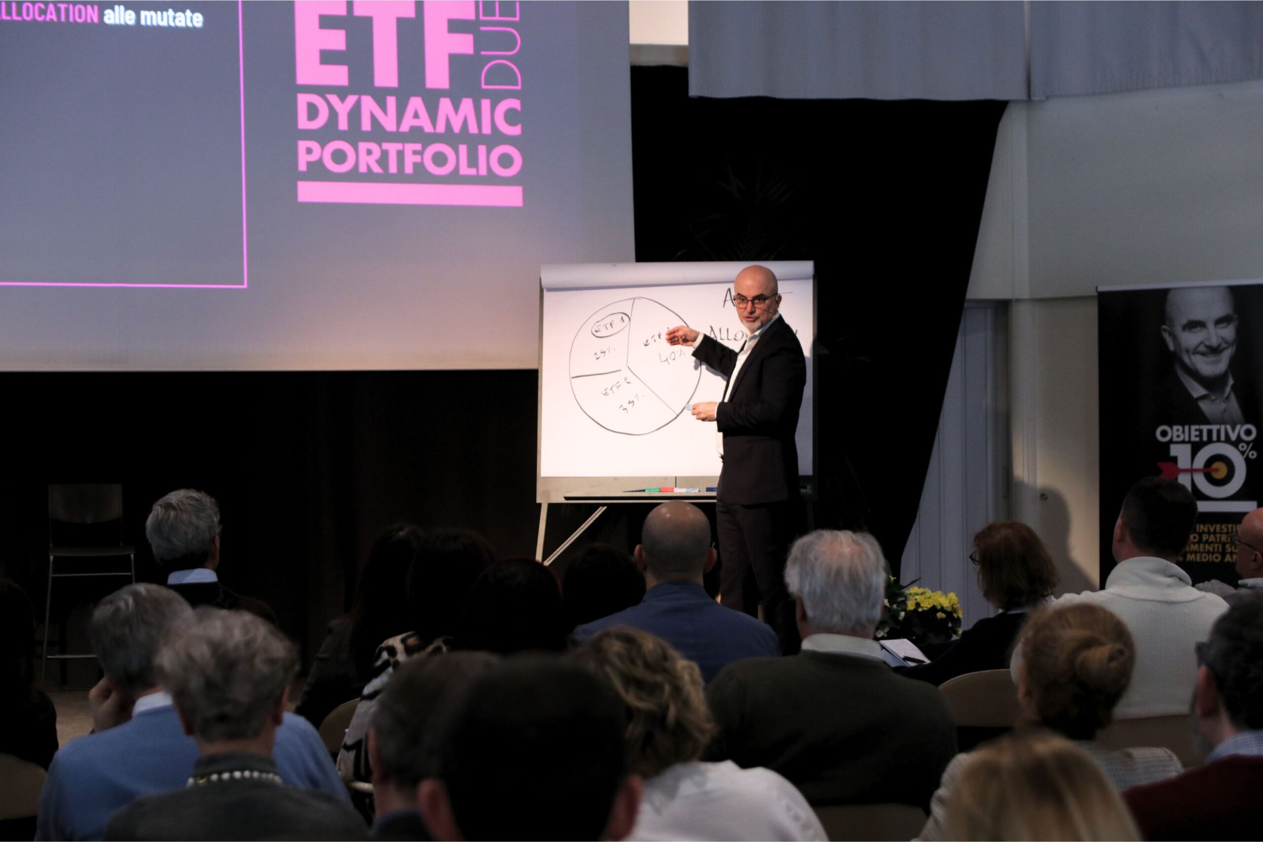 Era seduto in terza fila a OBIETTIVO 10%, giacca blu, capelli leggermente brizzolati. Così a